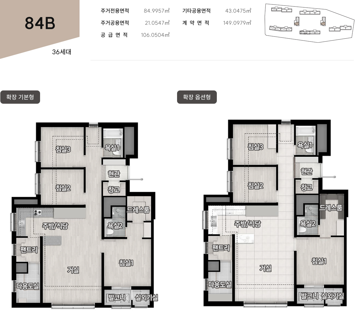 실사용을 키우는 평면, 84·107㎡의 투트랙