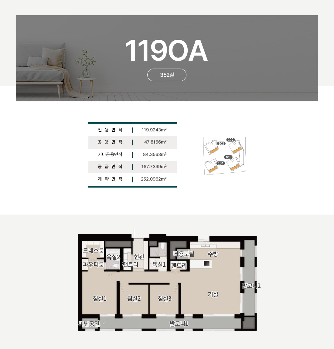 전용 84㎡, 119㎡ 중심에 총 5가지 세부 타입을 갖춘 중대형 위주 라인업입니다. 실내는 발코니 연계형 오픈 주방, 팬트리·드레스룸·개별 창고까지 더해 수납과 동선을 크게 개선했습니다. 세탁실과 다용도실을 연결해 원스톱 가사 동선을 만들고, 건식 세면대 적용으로 아침 시간대 체류 동선이 겹치지 않도록 배려했죠. 청라 피크원 푸르지오는 시티뷰와 오션뷰를 동시에 품는 코너 유닛 비중을 높여 채광·조망 경쟁력을 극대화했습니다.