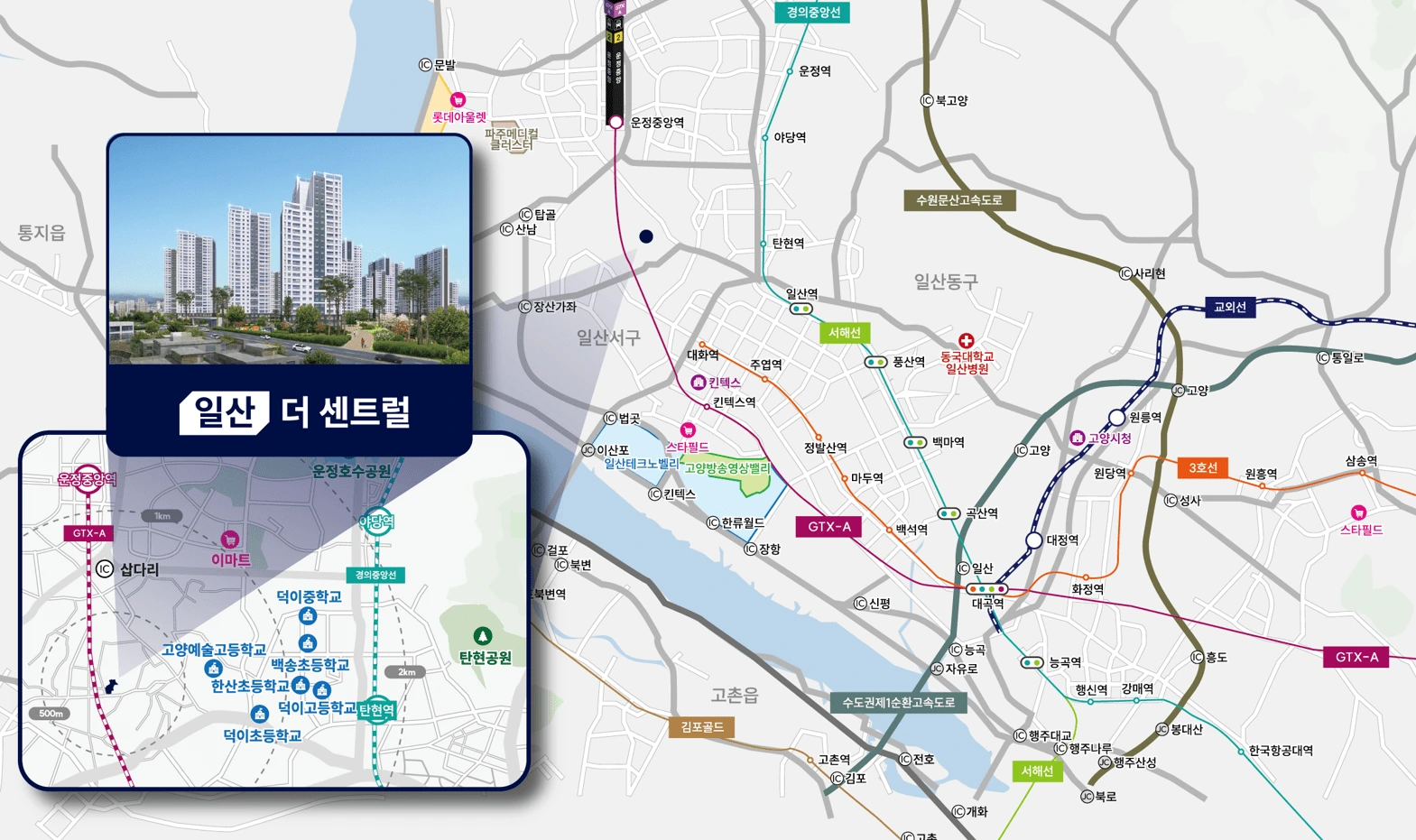 교통·개발 호재는 이편한세상 헤이리의 ‘현재 가치’와 ‘미래 가치’를 동시에 받쳐 줍니다. 2024년 12월 GTX-A 운정중앙~서울역 구간이 개통하며(운정·킨텍스·대곡·연신내·서울역), 서북권의 출도심 시간이 단계적으로 단축되고 있습니다. 향후 서울역~수서(삼성역 제외) 구간 2026년, 전 구간 2028년 개통 로드맵이 제시돼 광역 접근성의 체감 개선이 이어질 전망입니다. 자유로·서울문산고속도로·수도권제1순환과의 연계도 양호해 자차 통근 동선 선택지가 넓습니다.