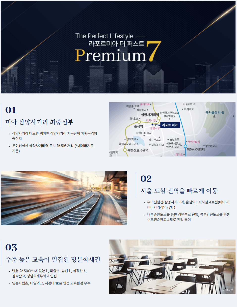 라포르 미아 더퍼스트는 뉴타운 개발의 속도, 이주 수요, 노후 주택 비중, 신축 선호라는 네 가지 축이 겹치는 자리에서 의미가 커집니다. 개발이 진행될수록 생활 인프라의 질이 올라가고, 신축이 희소해질수록 실거주 수요는 더 단단해지는 경향이 있습니다. 물론 가격 전망은 단정할 수 없지만, 수요가 두껍게 형성되는 입지에서 주거 안정형 상품이 갖는 경쟁력은 분명합니다. 라포르 미아 더퍼스트는 불확실한 시장에서 무리한 레버리지를 쓰지 않고도 생활의 기준을 올리는 방식으로 접근할 수 있는 단지로 정리됩니다.