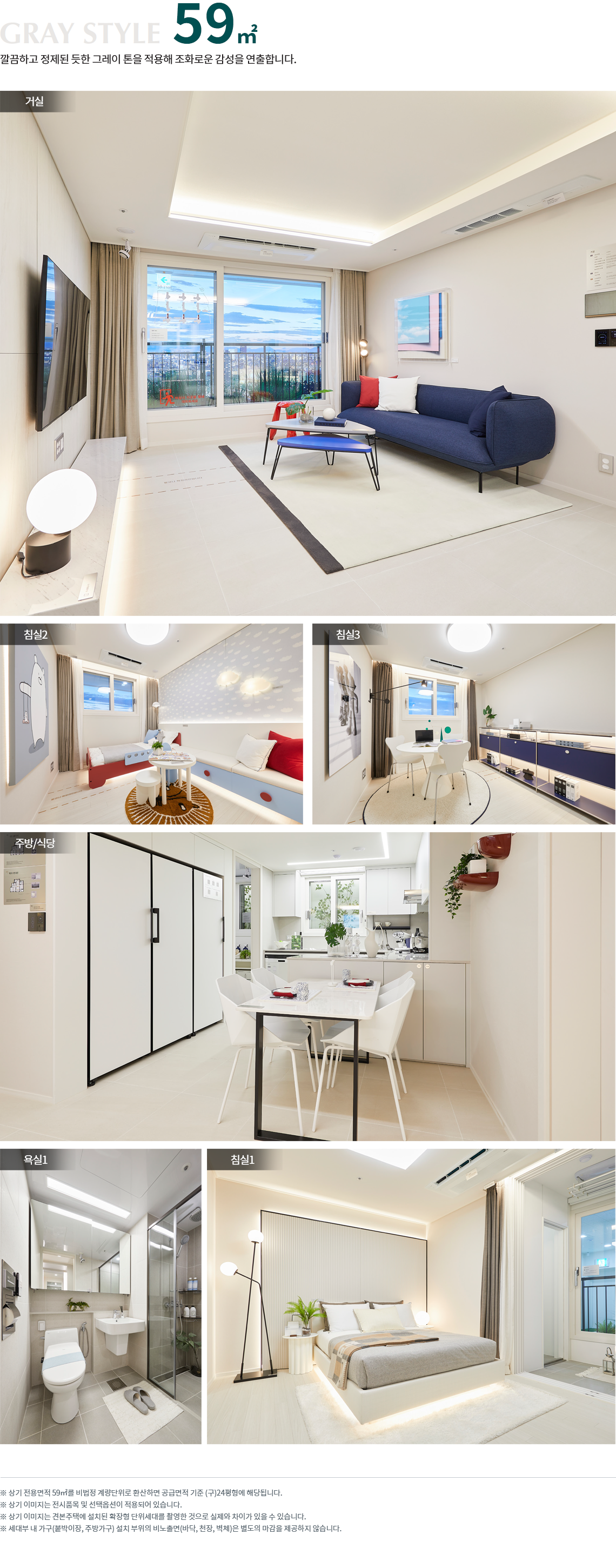 전용 59·84㎡가 주력이며 105㎡ 대형 라인업이 더해져 수요 스펙트럼을 넓혔습니다. 59A와 84A는 4베이 판상형으로 맞통풍과 채광이 우수하고, 알파룸과 대형 팬트리 등 유연한 수납 구성이 돋보입니다. 선택에 따라 알파룸을 와이드 다이닝이나 복도 팬트리로 바꾸는 등 라이프스타일에 맞춘 커스터마이징이 가능하다는 점도 매력입니다. 메인인 84B는 2베이 타워형·LDK 구조로 거실 개방감과 조망을 극대화한 타입으로, 가족 활동 공간의 밀도를 높이면서도 일조를 놓치지 않도록 계획했습니다. 실사용 빈도가 높은 주방·세탁·수납의 동선을 짧게 묶어 ‘하루의 피로’를 줄여주는 구성이 참 실용적입니다. 이런 평면 완성도는 광양 푸르지오 센터파크의 체감 가치를 키우는 핵심입니다.