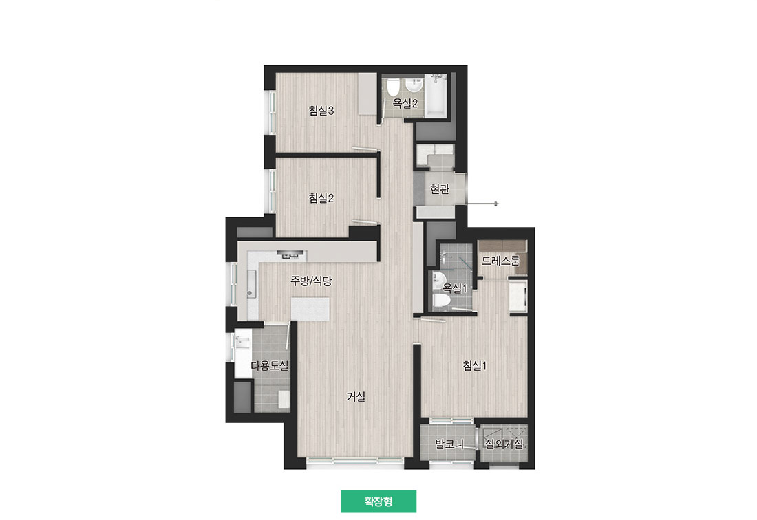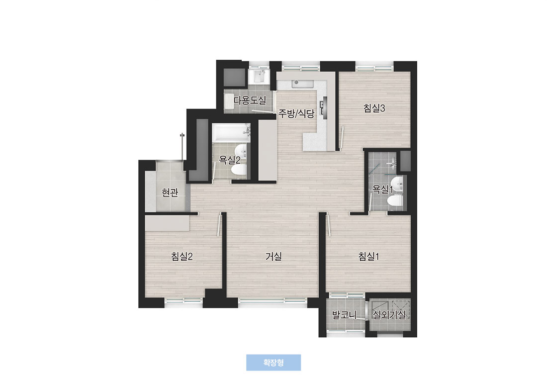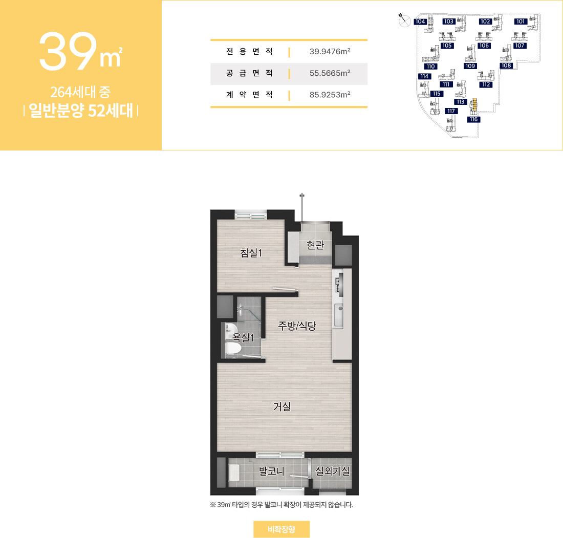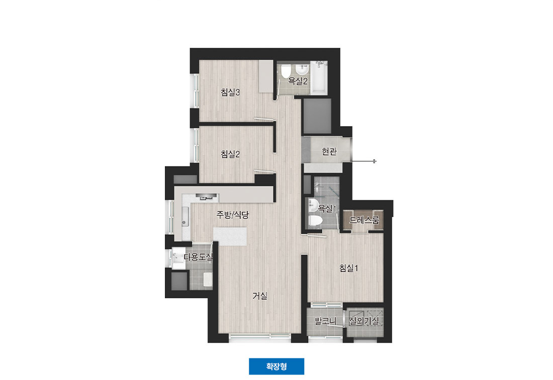 소형부터 중형까지 균형 있는 라인업이며, 특히 59 타입의 비중이 환금성과 임대수요 양면에서 유리합니다. 59A는 3베이 판상형으로 맞통풍과 ㄷ자 주방 동선이 강점이고, 59B는 타워형으로 침실 분리와 드레스룸 수납이 효율적입니다. 39·46은 1~2인 가구에 최적화된 콤팩트 구성이며, 고양더샵포레나는 알파룸과 팬트리처럼 눈에 띄지 않는 실용 공간을 빼곡히 숨겨 둔 점이 인상 깊었습니다.