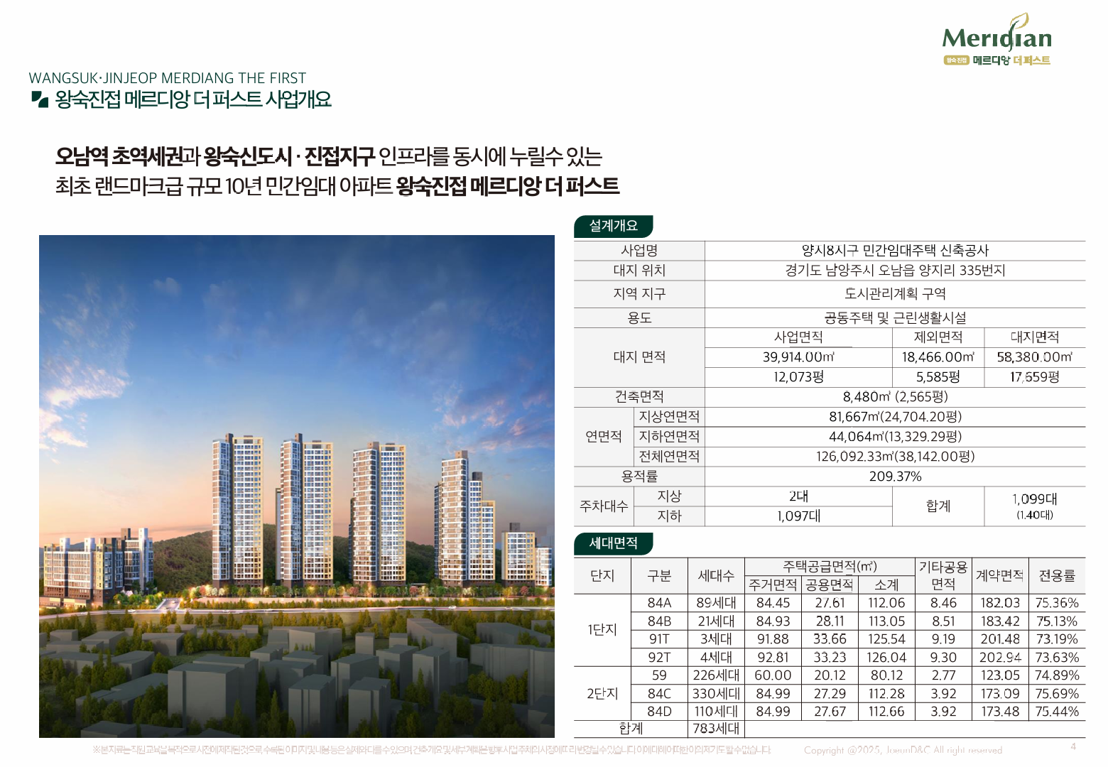 왕숙·진접 생활권의 핵심 축에 들어서는 왕숙 진접 메르디앙 더퍼스트는 1·2블록 총 783세대, 지하 1층~지상 29층 14개 동으로 구성된 민간임대 아파트입니다. 모든 차량 동선을 지하로 내리고 지상은 녹지·보행 중심으로 계획해 어린 자녀와 노약자도 안심할 수 있는 단지 구조가 돋보입니다. 동 간 70m 안팎의 이격과 남향 위주 배치로 채광·프라이버시를 함께 확보했습니다. 이 기본기만으로도 왕숙 진접 월드 메르디앙 더퍼스트가 왜 “실거주 맞춤형 상품”으로 불리는지 체감하실 수 있습니다.