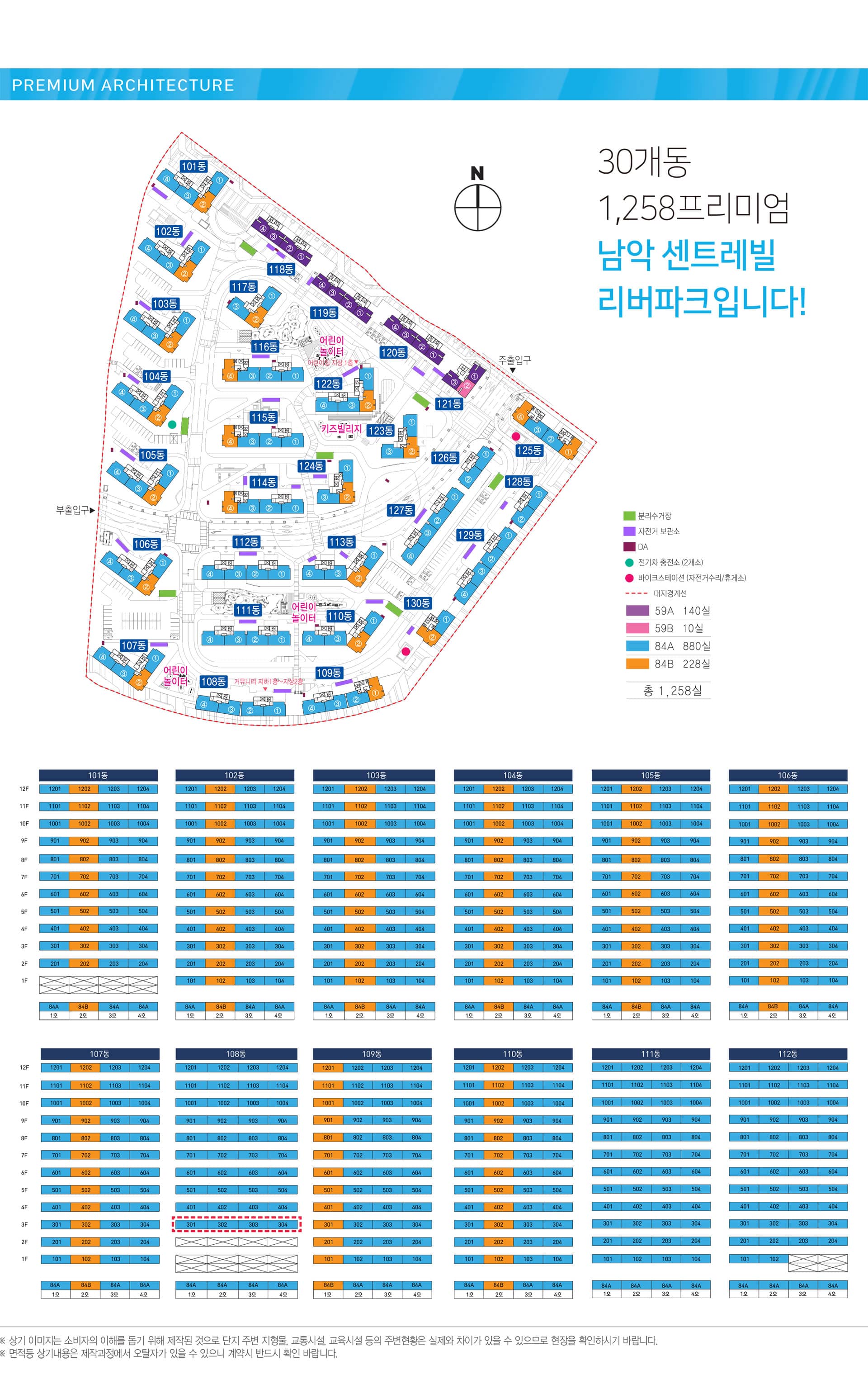 대지 약 6만7천㎡, 연면적 약 19만㎡ 규모로 지하1층~지상12층, 30개 동, 총 1,258세대가 구성됩니다. 용적률 210%대, 건폐율 22%대의 보수적 밀도로 계획돼 단지 곳곳에 녹지와 보행 동선을 넉넉히 담아냈습니다. 남악 센트레빌 리버파크가 ‘공원형’이라는 표현을 얻는 이유입니다.