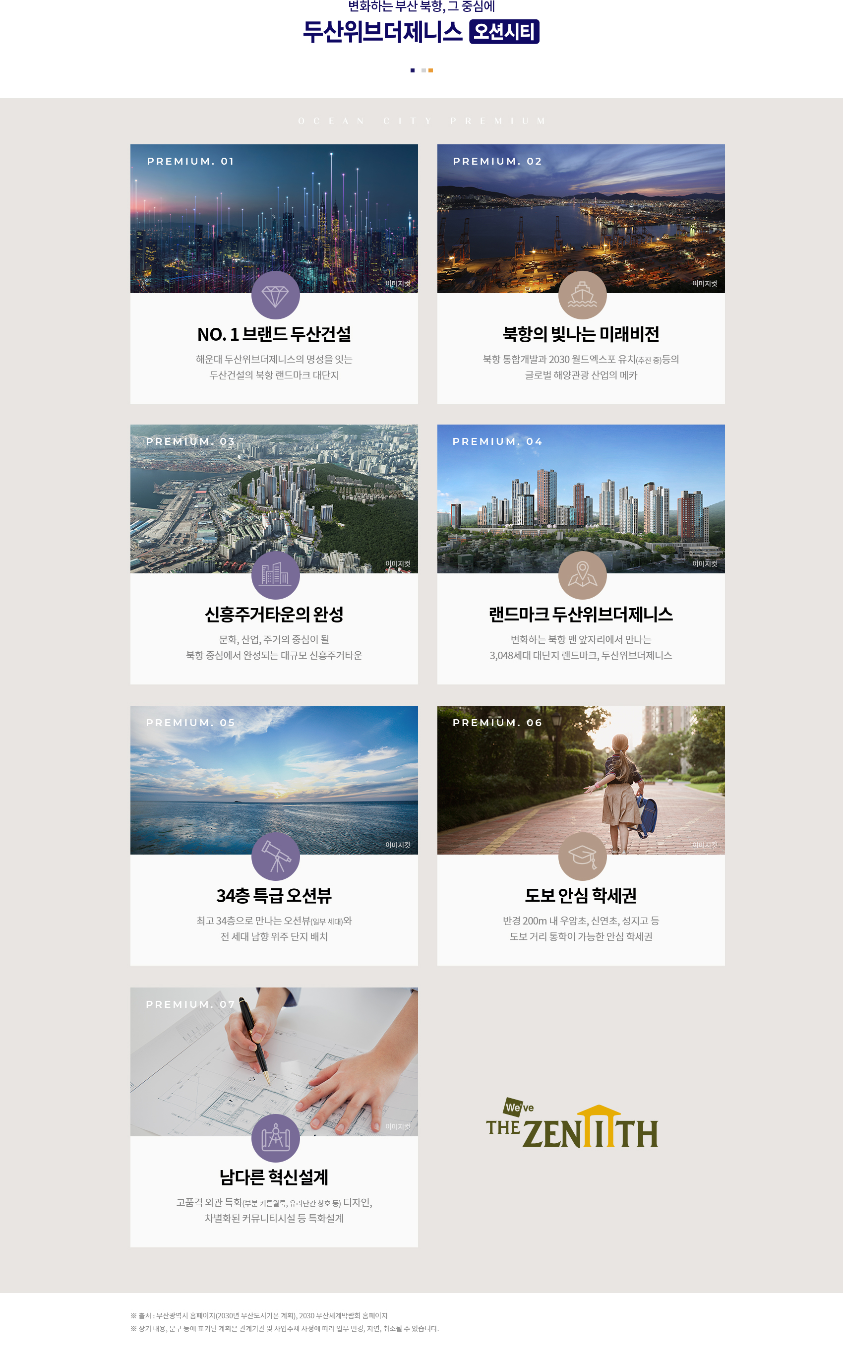 북항 리뉴얼, 공원화 사업, 해양관광·문화 수요의 확대는 거주·임대 동시 수요를 키우는 촉매로 작용합니다. 브랜드 대단지, 신흥 타운의 집적 효과, 생활·교육·교통의 균형은 가격 변동성의 바닥을 다지는 요인입니다. 두산위브더제니스 오션시티는 실거주와 자산 보유를 병행하려는 수요층에게 균형 잡힌 선택지입니다.